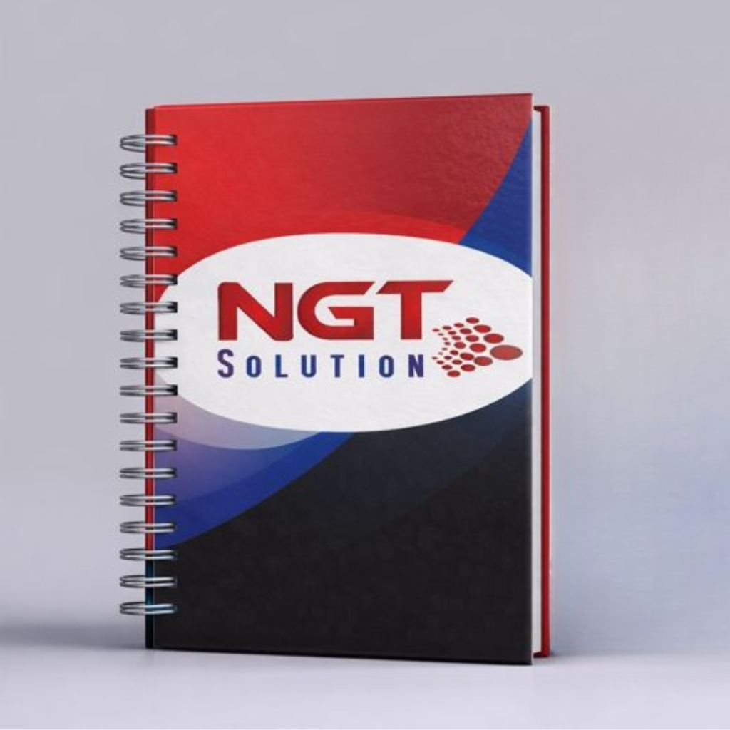 Produzimos cadernos A5 capa dura com wire-o, com acabamento profissional, que colocam sua marca em evidência o ano inteiro.